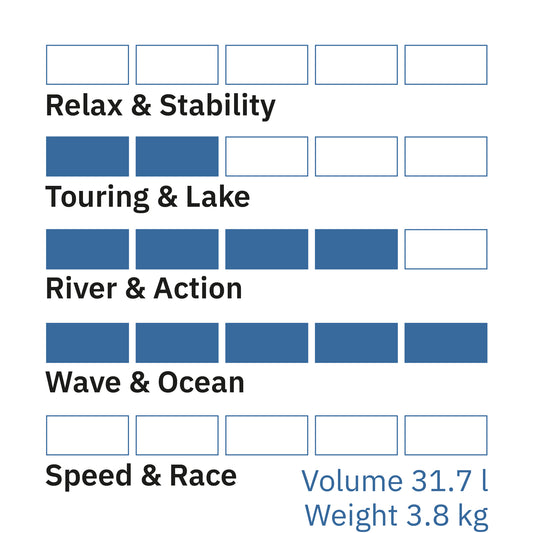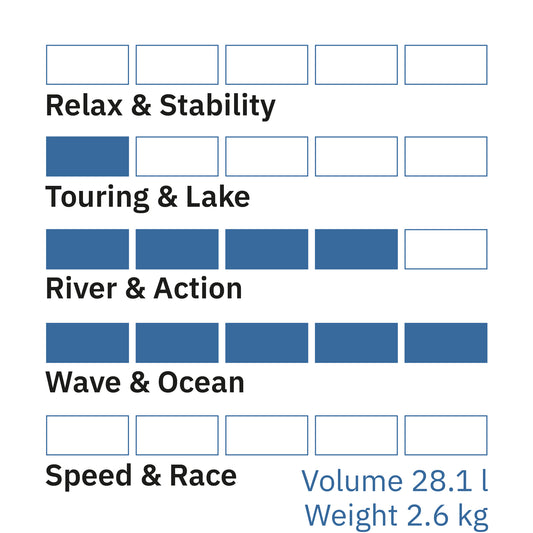 Die ULTRALIGHT EDITION setzt neue Massstäbe in Bezug auf Gewicht und Packmass. Das Gewicht wurde im Vergleich zum herkömmlichen Stand Up Paddleboards nahezu halbiert und ermöglicht ein leichtes Gewicht von weniger als 5kg. Ein durchdachtes Design ermöglicht das Falten auf ein halbes Packmass.